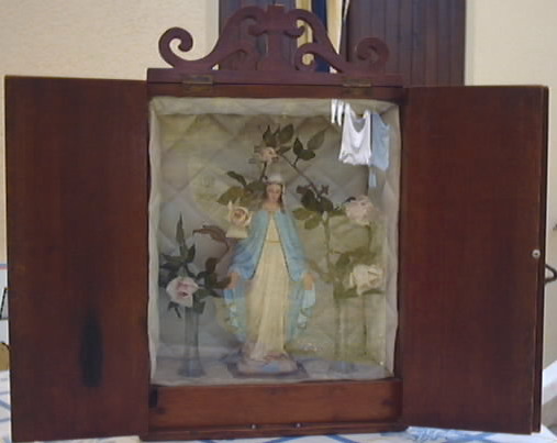 Elle Était devenue le centre de la nichÉe. où, Toute la famille priait. A cété dÉelle, un bouquet de fleurs fraÉchement coupÉes, Un rameau dÉolivier sur une soucoupe dÉeau bÉnite, Trempait. Chacun dans la maison te bÉnissait, Du plus profond de son cœur demandant misûricorde. Priant avec ferveur, Pour un des siens, malade, alitÉ, prisonnier. Le colon priant pour une sÉcheresse ÉcourtÉe, Un autre pour une meilleure année. Chacun avait dans son cœur quelque chose à te demander. Un ex-voto à rÉaliser.